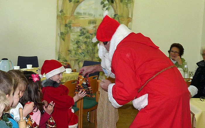 Neben bekannten Weihnachtsliedern zum Mitsingen waren auch einige neuartige Weihnachtslieder mit sehr hübschen Texten dabei, die auch bei den älteren Gästen sehr gut ankamen. So hieß es in einem Txt, auch die Achtzigjährigen sollen den Stiefel zum Nikolaustag rausstellen.
