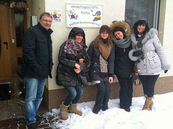 Bei dem Projekt geht es um ein Praktikum, welches die italienischen Kolleginnen in den Kindertagesstätten Abenteuerland Hachelbich und Zwergenland Sondershausen Berka absolvieren werden. Mit etwas gemischten Gefühlen betrachtete man die Schneelandschaft, bevor es nach Hachelbich weiter ging.
