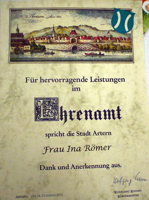 Den Ehrenamtspreis 2012 der Stadt Artern erhielten: