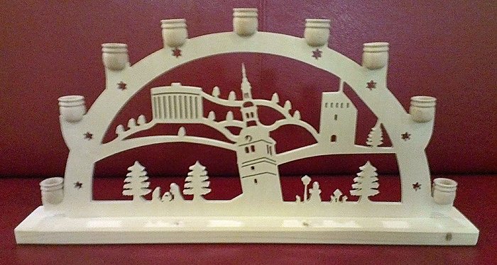 Man setzte sich hin, um einen ersten Entwurf des Schwibbogens zu kreieren. Wie soll er denn aussehen? Neben den "Schiefen Turm" mussten auf jedenfalls auch die bekannten Sehenswürdigkeiten der Stadt vorkommen. Man entschied sich hierbei für den "Hausmannsturm" und das "Panorama Museum", welche sehr filigran herausgearbeitet wurden.