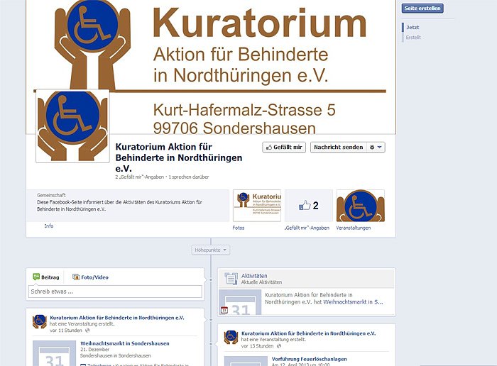 Seit kurzem präsentiert sich das Kuratorium auch im Internet und ist jetzt auf der Facebook-Seite KuratoriumAktionFurBehinderteInNordthuringenEv präsent. Das Kuratorium unterstützt seit Jahren behinderte Menschen im Norden Thüringens. Erst kürzlich hatten wir über die Aktion Rampe für Albert berichtet.