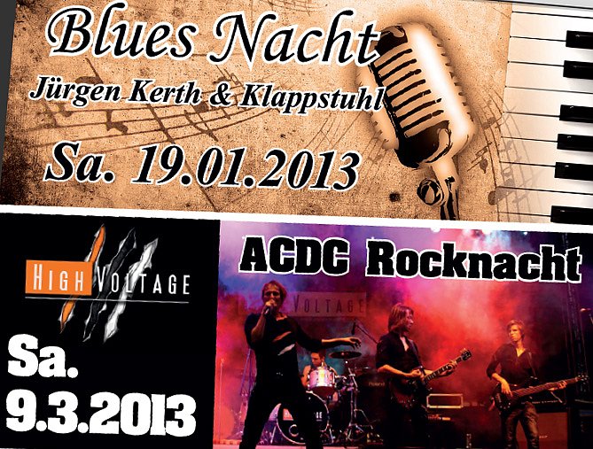 Autor: khhLos geht es bereits am Samstag, den 19.1.2013. Blues-Nacht mit Jürgen Kerth & Klappstuhl steht auf dem Programm. Weiter geht es am 26.01. APRÈS-SKI PARTY mit Kultmoderator Andy