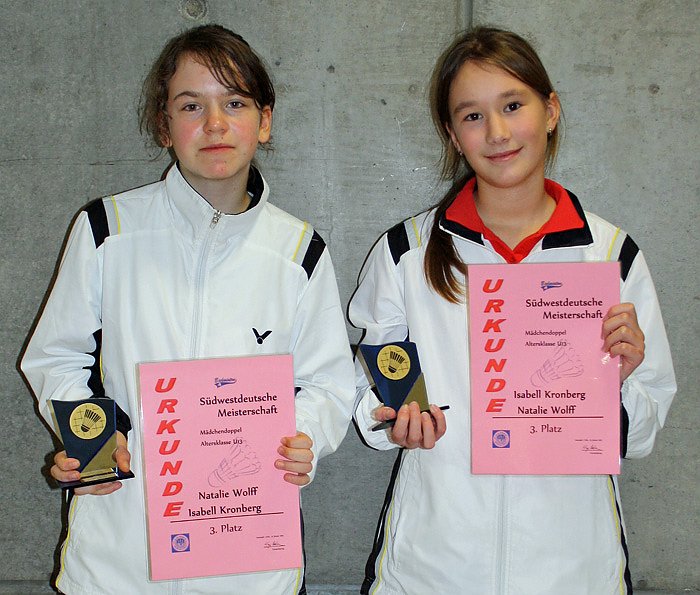 Frankenhäuser gewinnen im Mädchendoppel die Bronzemedaille bei Südwestdeutschen Meisterschaften im Badminton.
