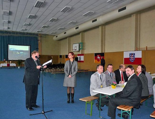 Zahlreiche Gäste wohnten dem Gottesdienst bei, so Oberstleutnant Armin Schaus, Kommandeur des Raketenartilleriebataillons 132, Oberstleutnant Thorsten Gleim stellvertretender Kommandeur des Logistikbataillons 131 Bad Frankenhausen, sowie Oberstleutnant Axel Hermeling, Kommandeur des Artillerieregiments 100 Mühlhausen. Wegen des starken Schneefalls waren die Vertreter des Standortes Bad Blankenburg nicht angereist. Damit sind auch die Orte genannt in deren Bundeswehrstandorten Barbara Reichert tätig sein wird.
