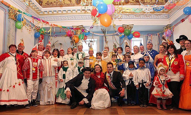 Autor: khhNatürlich fanden sich wieder viele Tollitäten im Rathaus ein und man stellte sich zu einem Gruppenfoto auf. Neu war in diesem Jahr, dass sich mit FdK Rot-Gold Jecha ein neuer Verein vorstellte.