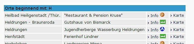 Auch bei Sondershausen ist nur ein Übernachtungsbetrieb dabei. Für Städte wie Artern, Ebeleben, Roßleben (leider ist Schönewerda mit dem Untrut-Gut nicht unter Roßleben eingetragen) und Wiehe, die an bestehenden oder künftigen Fernradwegen liegen, ist überhaupt kein Betrieb gelistet.
