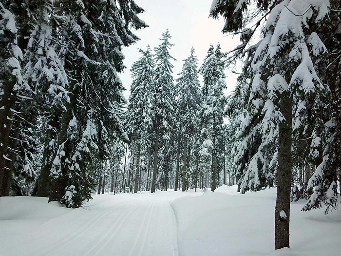 Autor: khhIm Skigebiet Bretterschachten in der Nähe des Großen Arber ist kn unterwegs und wie man auf dem Bild unschwer erkennen kann, lässt sich auf dem Weg schlecht mit dem Fahrrad fahren. Im Gegenteil, hier ist es sogar verboten, als Fußgänger und Wanderer die Loipen unsicher zu machen.