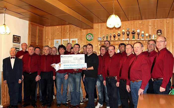 m Spenden für das Kinder- und Jugendhospiz Mitteldeutschland. 250 Euro kamen so für den guten Zweck zusammen. Cirka 15 Auftritte bestreitet der Chor im Jahr und begeistert sein Publikum mit Klängen aus verschiedensten Musikgenren. Der Männerchor Holzsußra zählt derzeit 27 Mitglieder und trifft sich zu regelmäßigen Chorproben. "Wir freuen uns hier helfen zu können. Das Kinder- und Jugendhospiz liegt unseren Vereinmitgliedern ganz besonders am Herzen. Danke an alle Spender" , so Steffen Lupprian vom Männerchor.