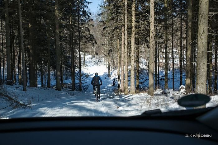 Die Läufer und Mountainbiker haben heute die Wettkampfstrecken final markiert. Im Start / Ziel-Bereich haben wir den Schnee geräumt. Der Freizeit- und Possenpark hat sogar schwere Technik eingesetzt, um die Wiese zu räumen.
