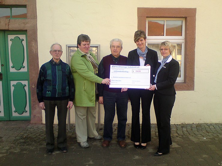 Unser Projekt "Regionales Brauchtums- und Frühlingsfest" in Bad Frankenhausen wird maßgeblich unterstützt von der Nordthüringer Volksbank eG. Die Spendenübergabe von 150 Euro erfolgte am 6. März 2013 in der Geschäftsstelle des BdV-RV Artern im Oberen Hof unmittelbar vor der Zusammenkunft des Regionalvorstandes.
