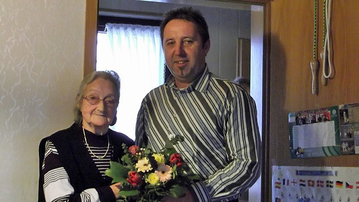 Bürgermeister Mario Merten gratulierte der ältesten Einwohnerin von Rottleben. In dem Fall drf wohl das Alter mal verraten.