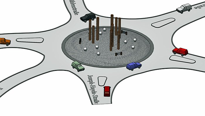 Interessant ist die Gestaltung der Säulen, die auf dem Kreisel platziert werden. Auf den neun Säulen wird stehen: