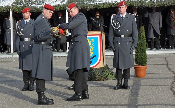 Mit der Übergabe der Wappen der Batterien 2, 3 und 4 an die zukünftigen Kommandeure in den neuen Standorten Weiden, Munster und Idar-Oberstein wurde der Weggang der Soldaten bildlich demonstriert.