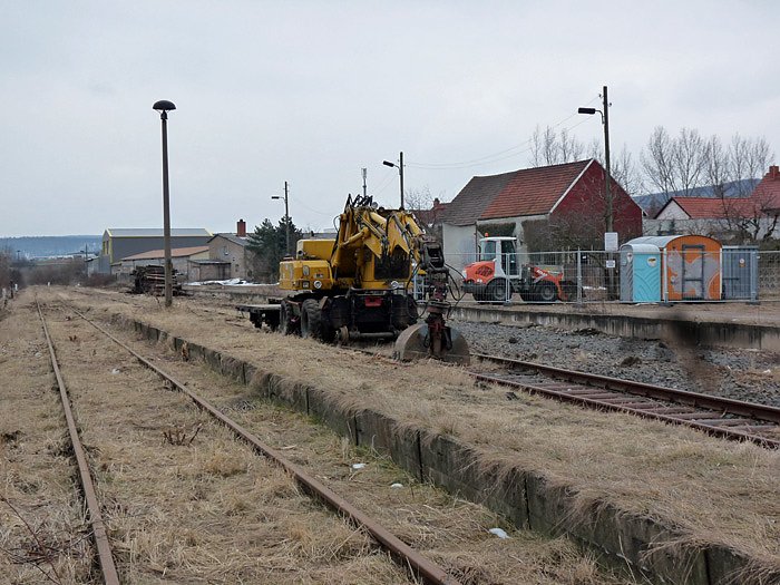 Am Bahnhof Jecha wurden bereits die ersten Schienen und Schwellen abgebaut. Damit ist es nur noch eine Frage der Zeit, bis man sich auch bis Hachelbich und Göllingen vorgearbeitet hat. Wenn dann die Schienen raus sind, müssen auch die ehemaligen Bahnübergänge vollständig neu ausgebaut werden, zumal ja dann der Unstrut-Werra-Radweg drauf liegen wird.