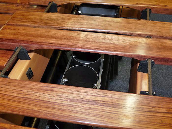 Durch Anschlagen der Hölzer wird die sich darunter in den Metallsäulen befindliche Luft in Schwingungen versetzt und so Töne erzeugt. In Ihrem Klang erinnern die Töne an karibische Musik.
