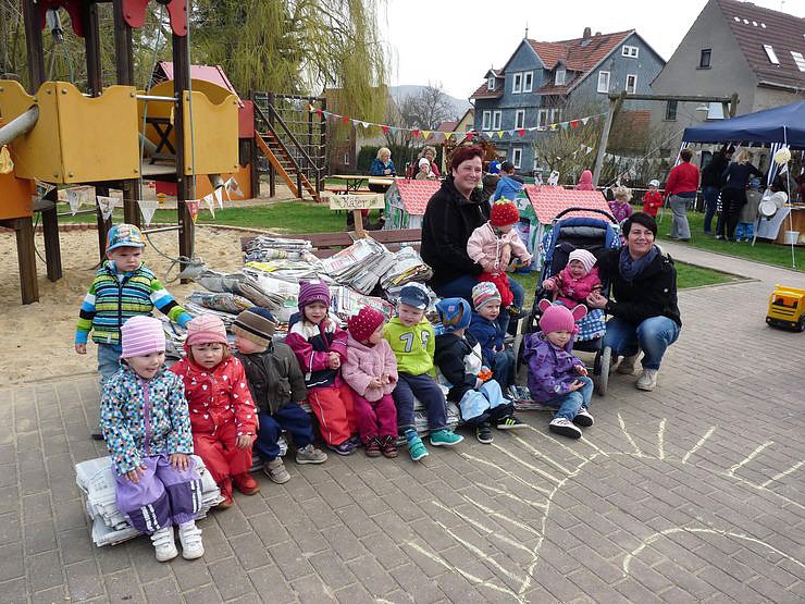 Mit einem Wettbewerb wurde das 2. Papierfest in der Kindereinrichtung "Arche Noah" 2 in Großfurra verbunden. Da wollten sich Elter, Großeltern, Verwandte und Bekannte nicht lumpen lassen und haben Unmengen von Papier gesammelt. Und das alles musste zur Kita gebracht werden.