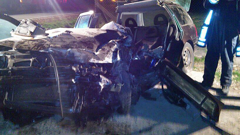 Schon auf der Anfahrt informierte der als erstes am Einsatzort angekommene RTW das die Person im PKW eingeklemmt ist.