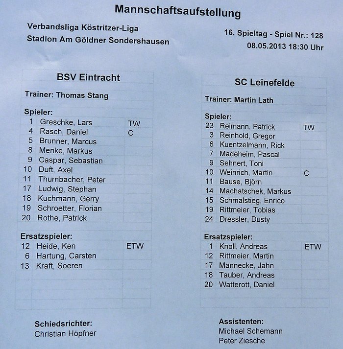 Seit 18:30 lief das Spiel BSV Eintracht Sondershausen - SC Leinefelde auf dem Göldner von Sondershausen. Hier erste Informationen (Endstand)