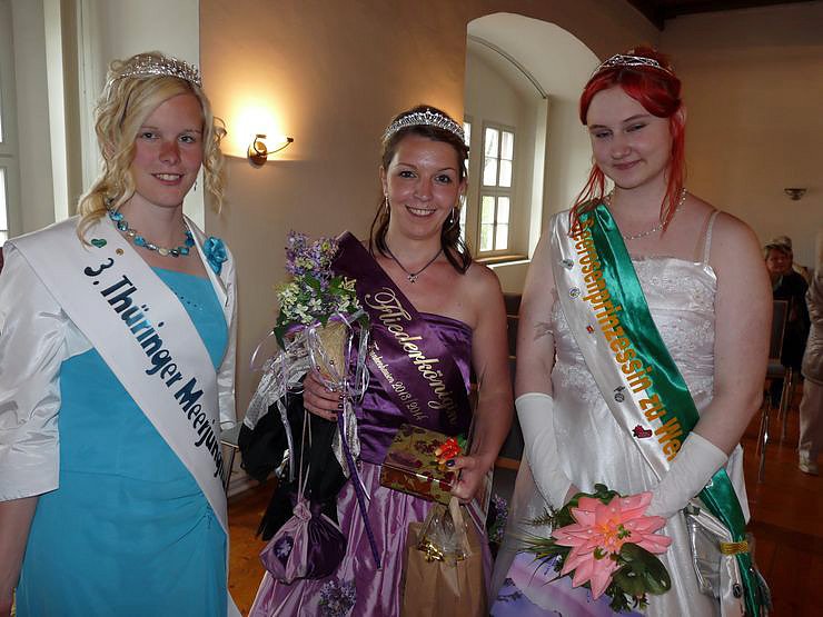 Natürlich war auch die neue Fliederkönigin dabei, Isabelle I., hier flankiert von der 3. Thüringer Meerjungfrau und der Seerosenprinzessin zu Werna aus dem Landkreis Nordhausen.