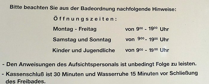 Und hier noch die Öffnungszeiten als Service.