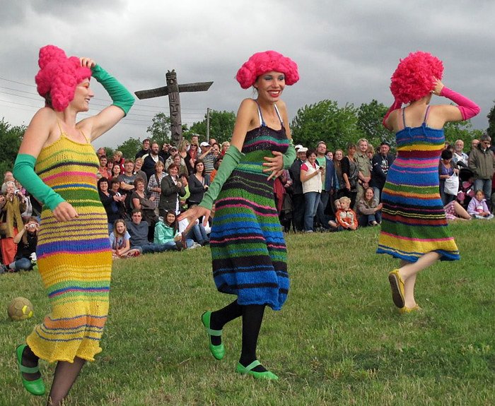 Mit dabei sind u.a. "US Rails", Kapelle Petra, Modetheater "Gnadenlos Schick" (Foto), Silke Gonska & Frieder W. Bergner, Matching Ties, Footsteps, KING KREOLE, Doc Fritz, Sondershäuser Pipes&Drums, Theaterwerkstatt 3k Mühl- hausen, INTERLOOP, Dr.Slide & Band, Zupforchester Gebra, Roger Tristao Adao, Canticas de Sefarad, Helmis Self Theater, CompoStellas, Sea Sick, JOSA und CrepesSucette.