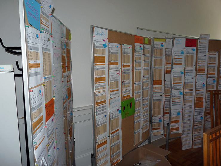 Im Allerheiligtum des Vorbereitungsteams wird generalsstabsmäßig der große Festumzug zusammen gestellt. Es muss ja schließlich jeder wissen, wann er wo zu stehen hat. Und das sind nur einige der Tafeln!