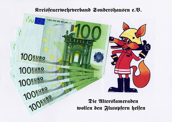 Diese Summe wurde am Donnerstag, dem 13. Juni, der Stadtverwaltung Sondershausen übergeben, mit dem Wunsch diesen Betrag einer bedürftigen Kindereinrichtung in dem Überflutungsgebiet zu überreichen.
