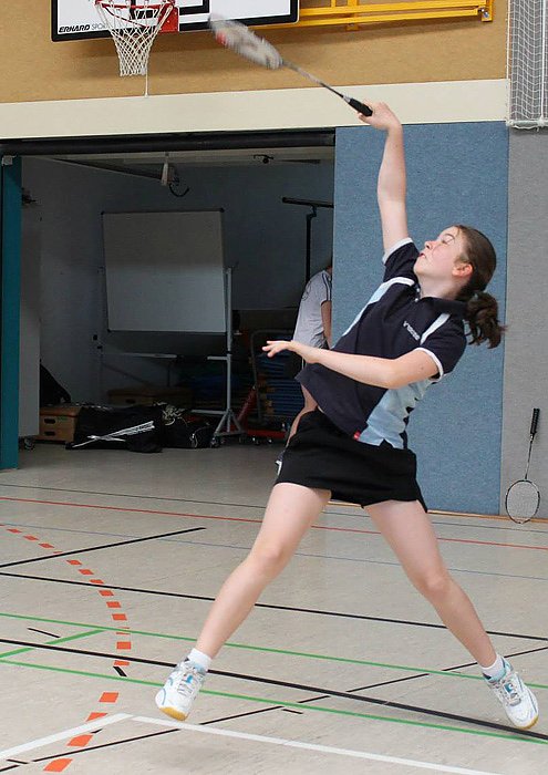 Auch einige Schläge machte sie, bemerkte aber gleich, dass es einen unterschied zwischen Federball im Garten und Badminton gibt.
