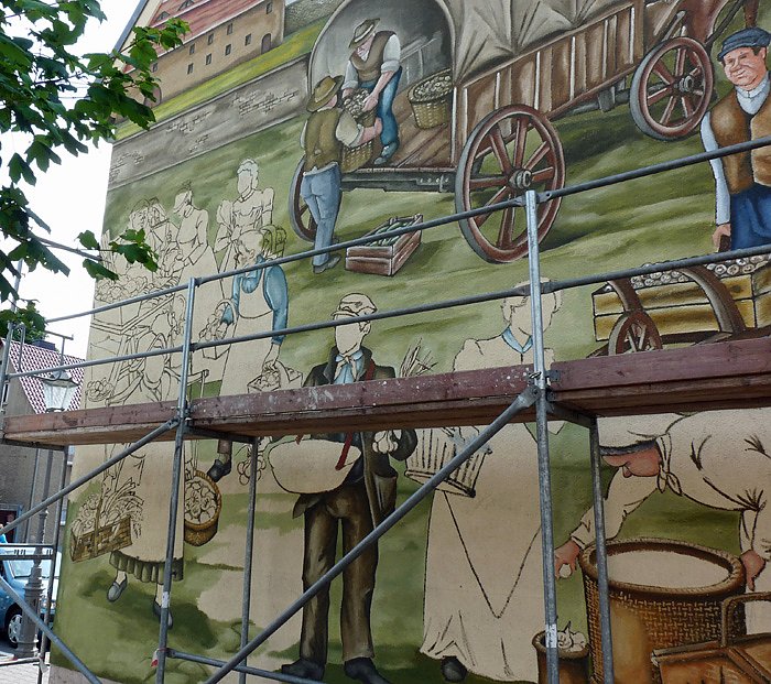 Am 22. Mai hatte kn berichtet, dass die Kyffhäusersparkasse an ihre Giebelwand an Wandbild auftragen lassen will. Gestern schaute kn schon mal vorbei.