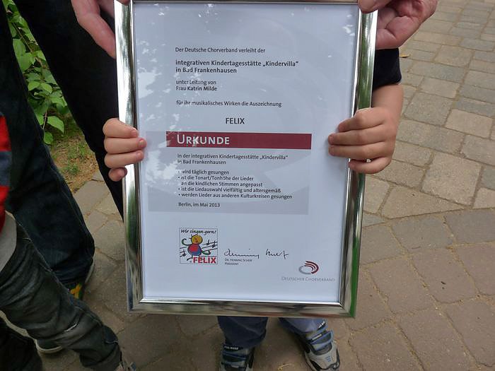 Felix - Was ist das? Der Felix ist ein Gütesiegel für Kindertagesstätten, das verliehen wird. Eine Kindertagesstätte aus Bad Frankenhausen konnte jetzt das Gütesiegel sogar verteidigen.