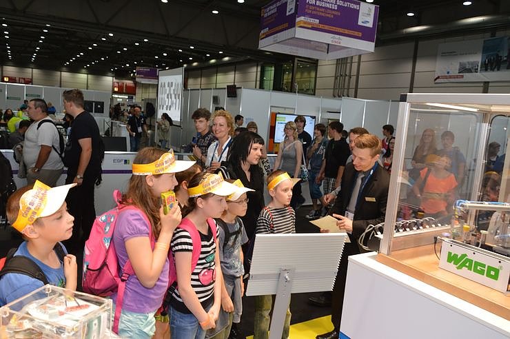 Unter dem Motto Discover your skills (Entdecke Deine Fähigkeiten) konnten die Besucher an den WAGO-Ständen auf spielerische Art ihre Fertigkeit im Elektrotechnik-Bereich unter Beweis stellen. Eigens für diesen Zweck hatte eine Gruppe von WAGO-Nachwuchskräften in der Ausbildungswerkstatt am Produktions- und Logistikstandort Sondershausen (Thüringen) zwei Modelle entwickelt: Eine Sortieranlage, die einem Fertigungsautomaten aus der WAGO-Produktion nachempfunden wurde, zeigte auf, wie Einzelteile nach vorher festgelegten Kriterien sortiert werden können. Die Standbesucher hatten die Aufgabe zu meistern, das System mit der richtigen Verdrahtung in Gang zu setzen.