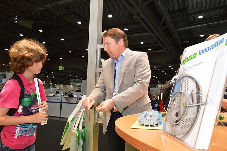 Fachkräfte, Auszubildende, Ausbilder und auch Geschäftsführer Sven Hohorst beantworteten Fragen zu Produkten und Karrieremöglichkeiten. Das große Interesse an WAGO und die vielen Gespräche mit Gästen aus aller Welt freuen uns sehr – und machen unsere Auszubildenden, die tatkräftig mitgewirkt haben, stolz, berichtet Ausbildungsleiter Thomas Heimann. Maik Rehberg, E-Technik-Student bei WAGO in Minden, und Jan Bischoff, Auszubildender am Standort Sondershausen, pflichten ihm bei: Es hat uns viel Spaß gemacht, bei Besuchern aus aller Welt Interesse für unsere Berufe und unsere Firma zu wecken.