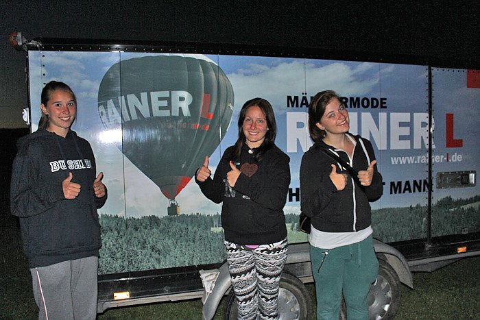 Gina-Marie, die am heutigen Abend gemeinsam mit Franziska und Ronja ihre zweite Ballonfahrt erleben durfte, findet die Abendfahrten wärmer. Die Zeit verging tatsächlich wie im Flug, die Aussicht war unbeschreiblich schön und niemand hat gefroren. Bei den Startvorbereitungen können alle nun schon tatkräftig mit zulangen. Bernd Pulser, der Mathelehrer, den man hier duzt, erklärt alle Handgriffe ganz genau. Und dann kann man das eben, freut sich Ronja.
