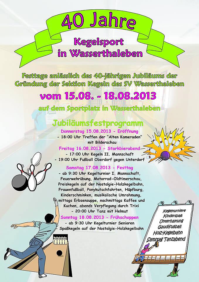 40 Jahre Kegelsport in Wasserthaleben sind ein Grund zu feiern. Damit Sie mitfeiern können, hier ein paar Informationen dazu.