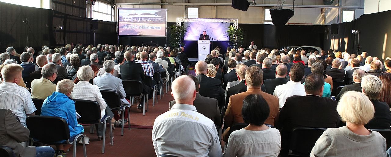 Helmut Peter begrüßte die zahlreichen Ehrengäste und reflektierte noch einmal die Geschichte des Unternehmens, vor allem hier in Duderstadt, also in Südniedersachsen. Danach sprach der Duderstädter Bürgermeister Wolfgang Nolte, er erinnerte auch an die Segnung der deutschen Einheit und wünschte der Autohaus-Peter-Gruppe viel Erfolg in Duderstadt und in Einbeck.