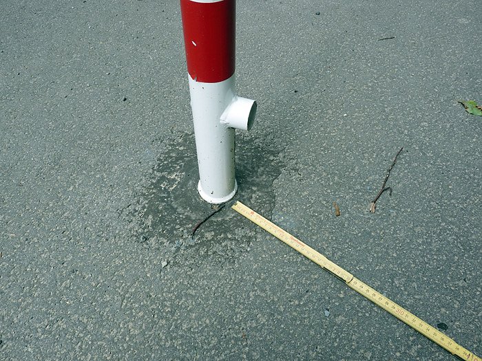Übrigens gibt es immer noch Schlupflöcher für Autos. Da das Maßststabsfragment eine Länge von 158 cm hat, kann man ersehen, es gibt immer noch Schlupflöcher für Autos! Wie konnte man das übersehen. Hier müssen bestimmt noch drei Poller rein. Das Geld ist im Landratsamt ja reichlich vorhanden. Wenn nicht nimmt man es von der Sanierung der Schulen. Bei den vielen Millionen die dort gebracht werden fällt der kleine Abzweig bestimmt nicht auf, oder?