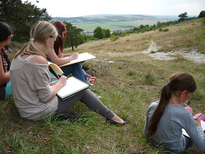 Autor: khhAm vergangenen Montagnachmittag (26. August) fanden sich 7 Kinder am Panorama Museum ein, um an dem wieder beginnenden Kinderkurs teilzunehmen. Laura, Josi, Emi, Katharina, Vanessa, Fatima und Juliane wappneten sich mit Stiften und ihren Skizzenbüchern, um gleich zum Kursauftakt sich intensiver mit der heimischen Landschaft zu befassen. Von den anwesenden Mädchen sind sechs schon länger dabei, lediglich Emi ist neu in der Gruppe, kannte aber bereits die museumspädagogische Werkstatt von einem Ausflug mit ihrer Schulklasse her.