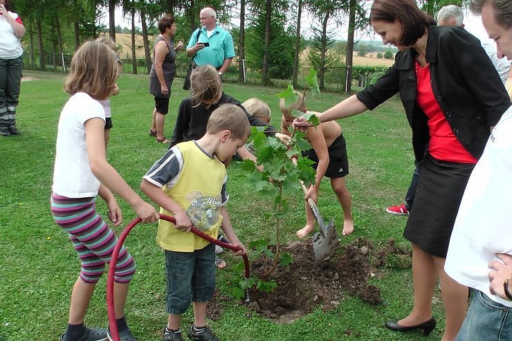 Wenn kn von einer tragenden Rolle der Landrätin sprach, dann lag das daran, dass sie nicht nur mit dem Spaten half, sondern auch das junge Bäumchen hielt, dass heute zum Jubiläum gepflanzt wurde.
