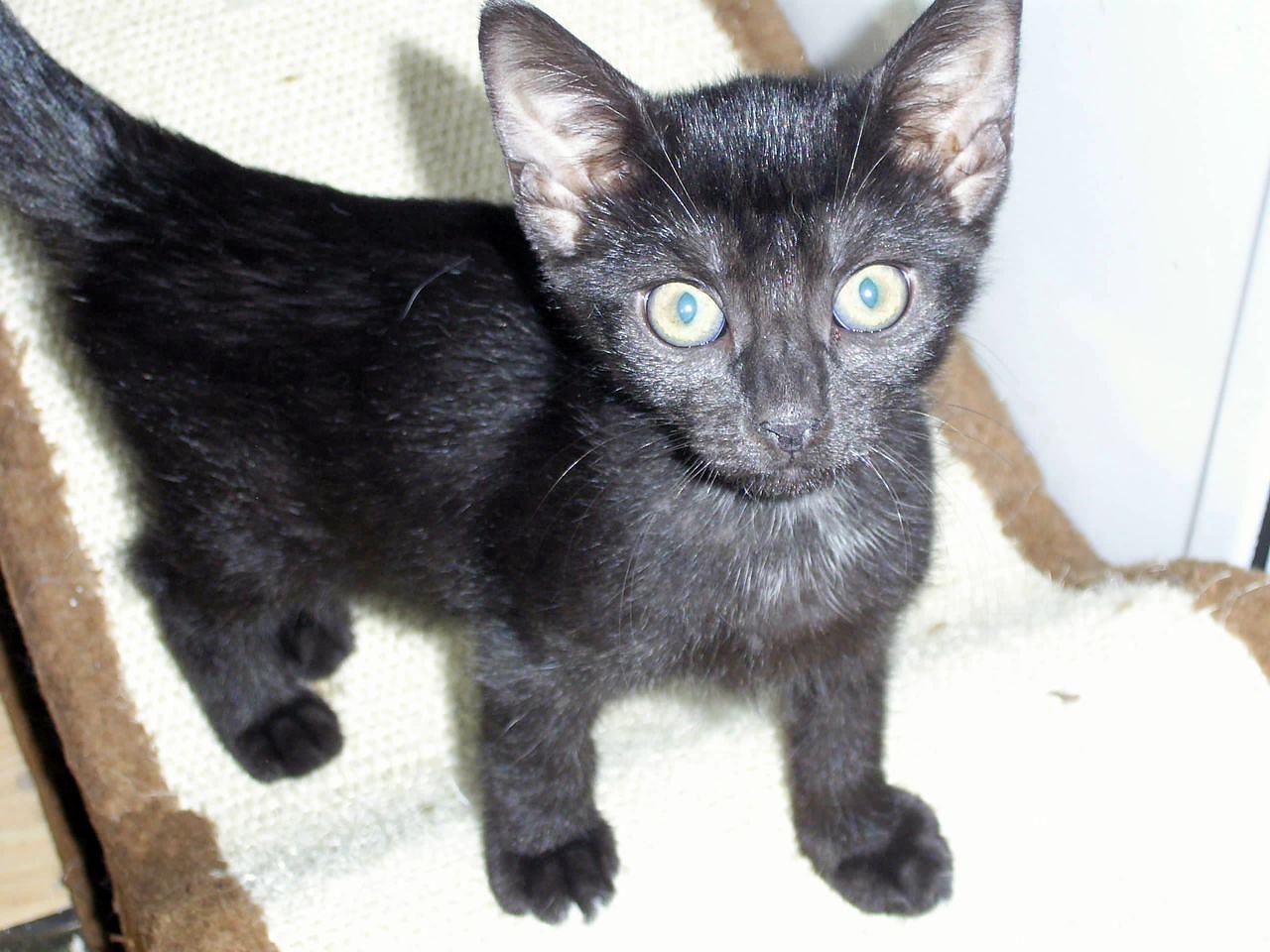 Die kleine Dame kam im Alter von etwa vier Wochen ins Tierheim und musste daher mit der Flasche aufgezogen werden. Inzwischen hat sie - wie ihre Geschwister - die 1. Impfung hinter sich und kann in ihre neue Familie. Wie alle Flaschenkinder ist sie sehr verschmust und läuft dem Menschen hinterher.