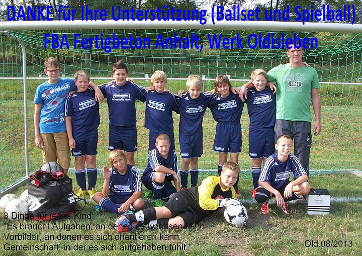 Das Unternehmen FBA Fertigbeton Anhalt GmbH & Co. KG, Werk Oldisleben ist beim Sportverein in Oldisleben sozial aktiv geworden. Für die finanzielle Unterstützung möchte sich der VfB Oldisleben noch einmal öffentlich Bedanken.