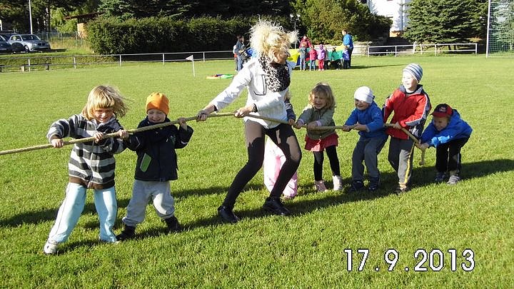 Ab 9:15 Uhr, nach dem Start des Sportfestes auf dem Sportplatz in Großfurra, waren 35 Kinder aus Großfurra (Kita Arche Noah Haus 2) und ca. 60 Kinder aus Stockhausen (Haus 1) aktiv bei Sport und Spiel tätig.