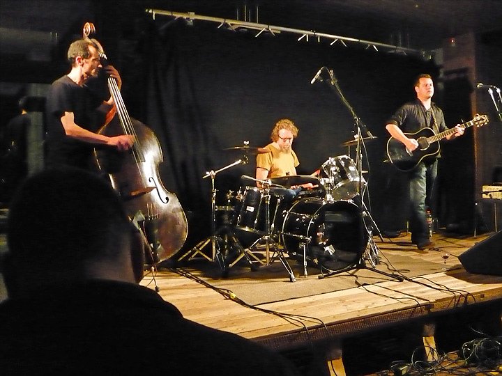 Die Drei spielten in der klassischen Trio-Band-Besetzung Gesang, Gitarre, Bass und Schlagzeug und es war erstaunlich welchen Klangfarbenreichtum diese drei Musiker zelebrierten. Der Frontmann – gesegnet mit einer kräftigen Stimme - spielte auf seiner Gitarre nicht nur rhythmische Begleitung, sondern durchaus auch fingerflinkes Melodiespiel und überzeugende Soli, wobei er den Sound seiner akustischen Gitarre mittels eines kleinen, aber überaus feinen Röhrenamps immer wieder mal klanglich in eine wilde E-Gitarre verwandelte. Das war ziemlich raffiniert. Mitunter nutzte er den separat abgenommenen Röhrensound und legte darauf etwas lauter den natürlichen Klang seiner akustischen Gitarre, wodurch der Eindruck von zwei synchron spielenden Instrumenten entstand.
