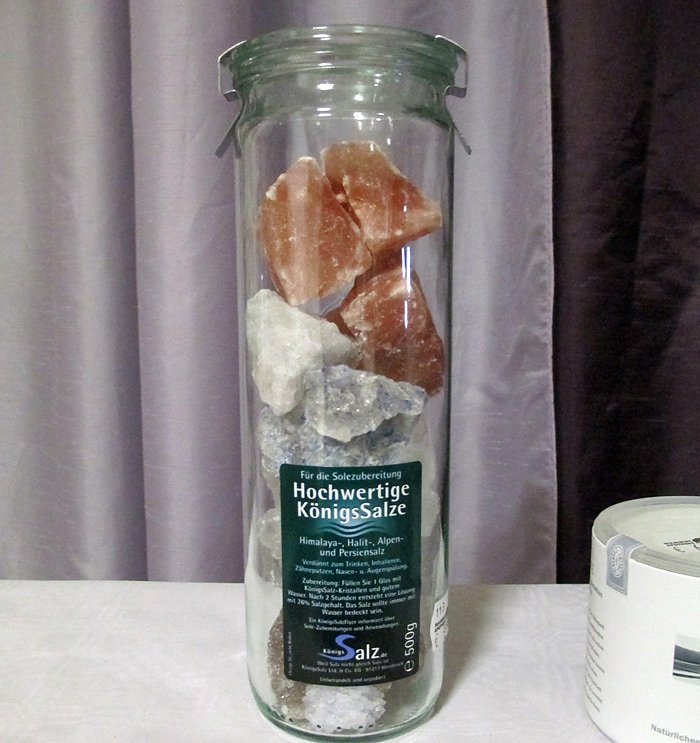 Zum Beispiel Himalayasalz, Persiensalz, Halitsalz sowie Alpensalz, diese Salze unterscheiden sich durch die verschiedenen Mineralien die sie enthalten. Diese natürlichen Salze eignen sich gut für Salzlösungen mit denen man eine Trinkkur machen kann. Weiterhin kann man die Salze für Inhalation, Nasenspülung und auch zur Hautbehandlung einsetzen.