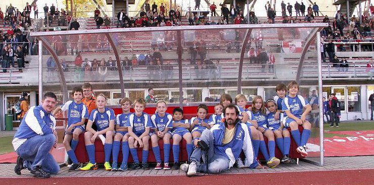 Danach zogen sich die Kids schnell um verfolgten das Spiel im Familienblock auf der Haupttribüne, wo die Eltern bereits auf ihre Jungs und Mädels warteten.