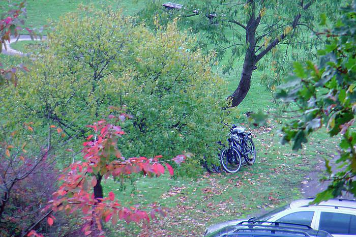 Der einzige Fahrradständer, der eigentlich auch nicht diese Bezeichnung verdiente, wurde gemieden, weil man sich in diesen Krücken sehr leicht die Felgen verdreht. Aber nicht Radfahrer haben natürlich keinen Sinn für so etwas.