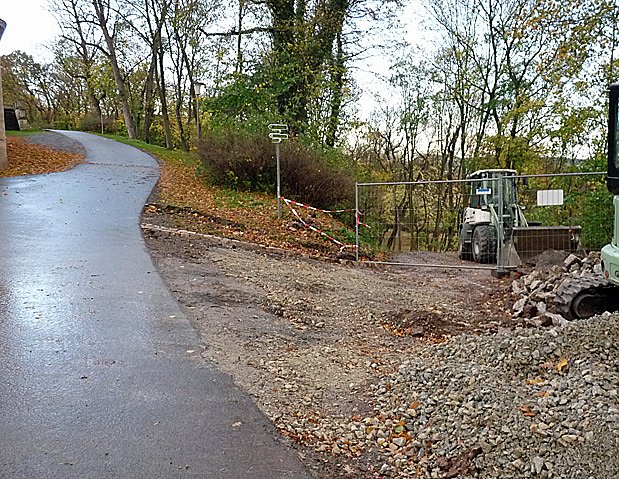 Autor: khhSeit einiger Zeit sind Baufahrzeuge neben dem Schloss aufgefahren. Vor Einbruch des Winters wird der Weg in den Schlosspark dann wohl fertig sein.