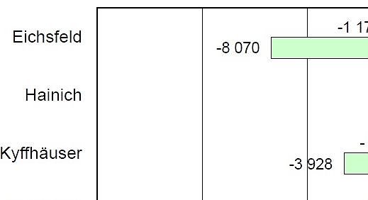 Hohe Verluste verzeichnete hingegen das Reisegebiet Eichsfeld. Die Zahl der Gästeankünfte sank hier auf 10.000 (-10,4 Prozent) und die Zahl der gebuchten Übernachtungen verringerte sich um acht Tausend auf knapp 32.000 (-20,4 Prozent). Auch in der Kyffhäuser-Region sowie im Südharz gingen die Kennziffern zurück.