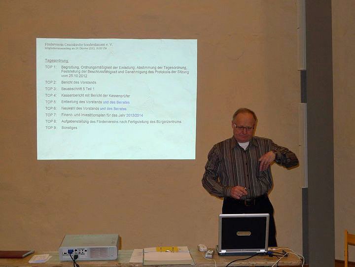 Zur Jahresversammlung des Fördervereins Cruciskirche fanden sich am 29.10.2013 über 30 Vereinsmitglieder im Bürgersaal der Cruciskirche ein und ließen sich durch ihren Vorsitzenden Herrn Wytrieckus über die zahlreichen Aktivitäten des vergangenen Jahres berichten.