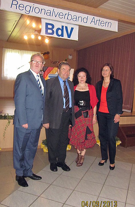 Am 4. September fand der "Regionale Tag der Heimat" in Artern in der Kleingartengaststätte Kyffhäusergrund statt, die fast 80 Teilnehmer empfanden die Atmosphäre dieses Treffens als angenehm und nahezu wie bei einem Familienfest. Das ist ein schönes Kompliment für die Organisationsgruppe - den Regionalvorstand mit der Sozialarbeiterin und drei freiwilligen Helfern.