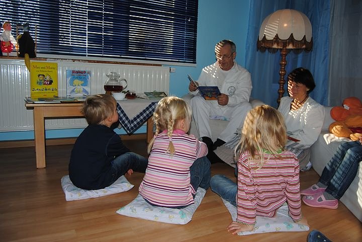 Kinder lieben es, gemeinsam mit ihren Eltern oder Erzieherinnen die Geschichten in den Büchern zu erleben. Frau Oesterheld, Sprachförderkraft im Rahmen des Bundesprogrammes "Frühe Chance - Sprache und Integration", konnte Eltern und Persönlichkeiten als Vorleser und Vorleserinnen gewinnen.